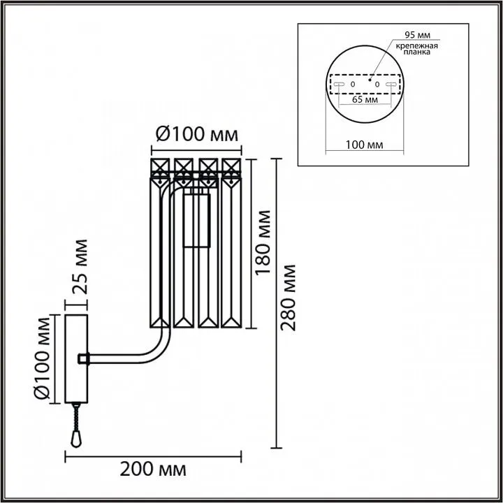 светильник предназначен для использования со скрытой проводкой