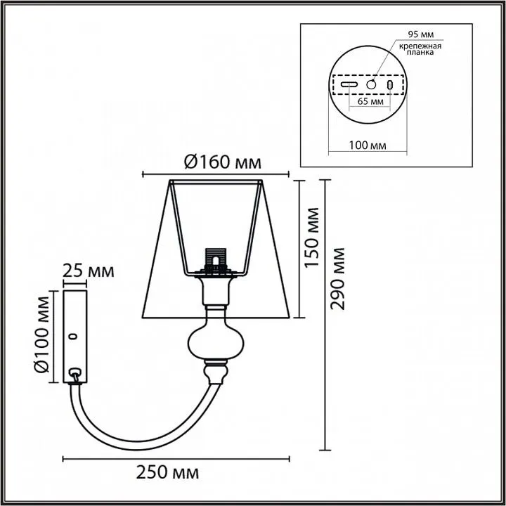 светильник предназначен для использования со скрытой проводкой