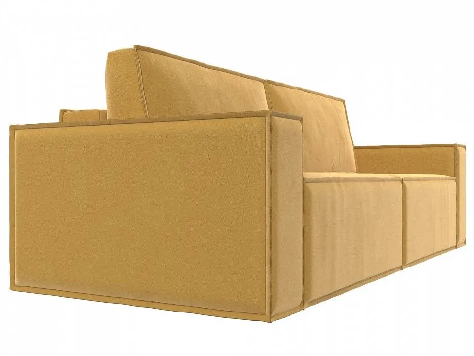 глубина сидения - 900 мм, подлокотники - пластиковые, упругость - средняя, изготовлен из первоклассных материалов, долговечен в эксплуатации, спинка состоит из двух съемных подушек, ножки устойчивые, созданы из качественного пластика, подлокотники прямые, широкие и мягкие