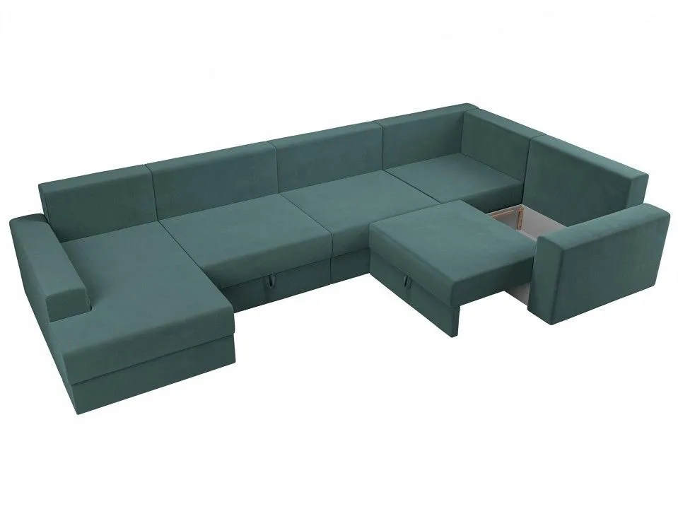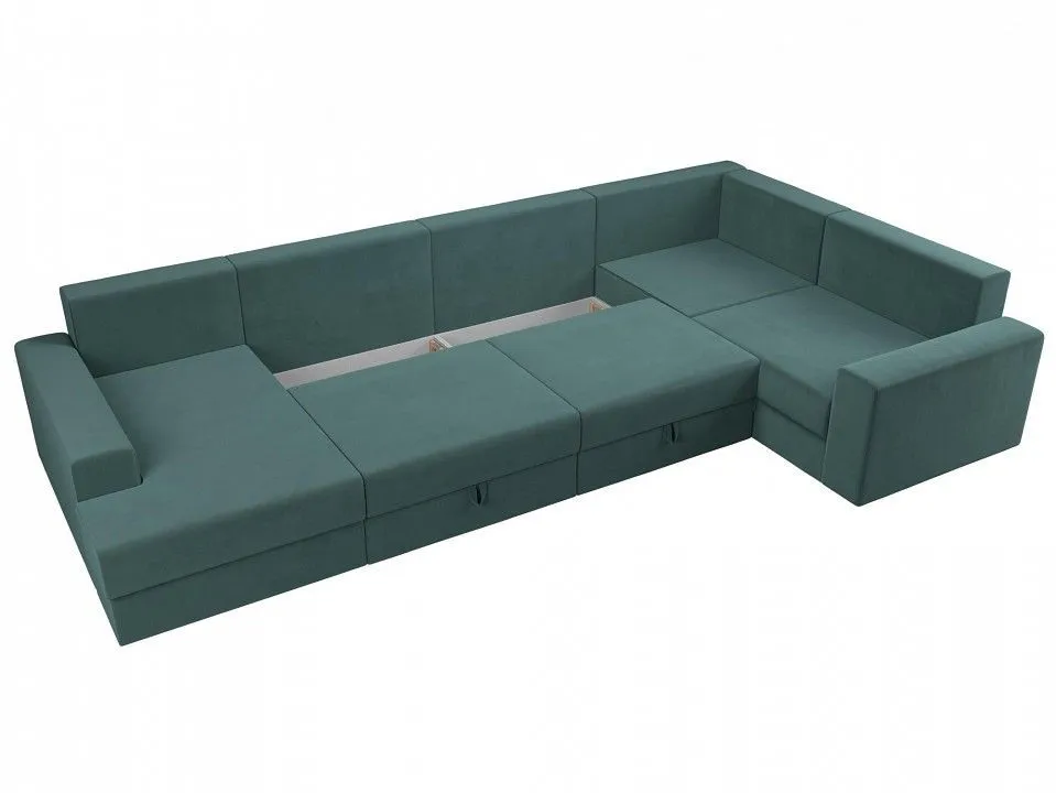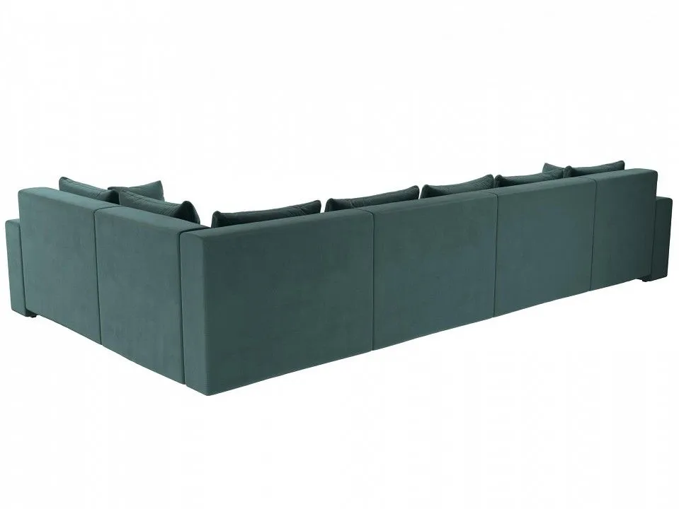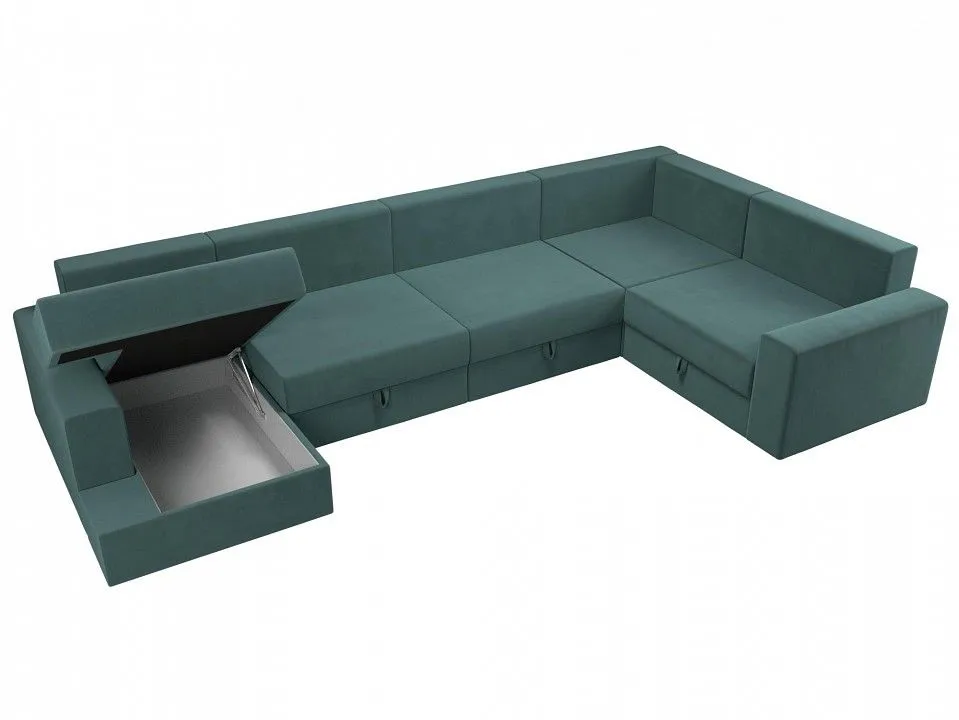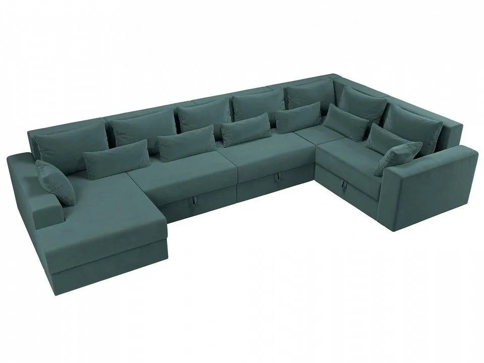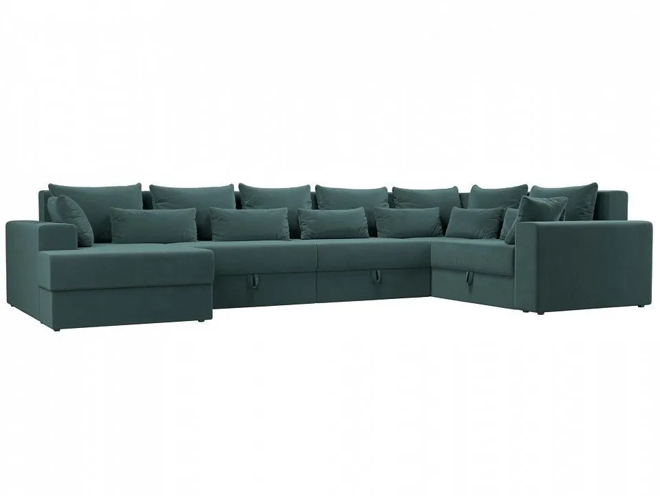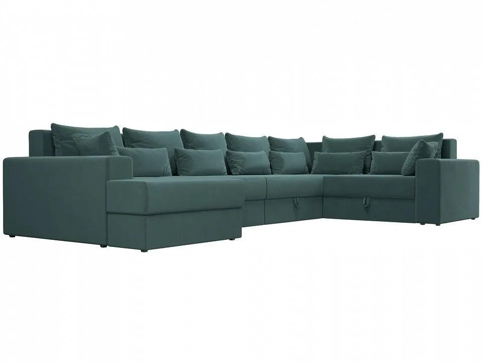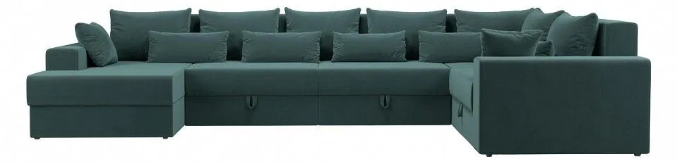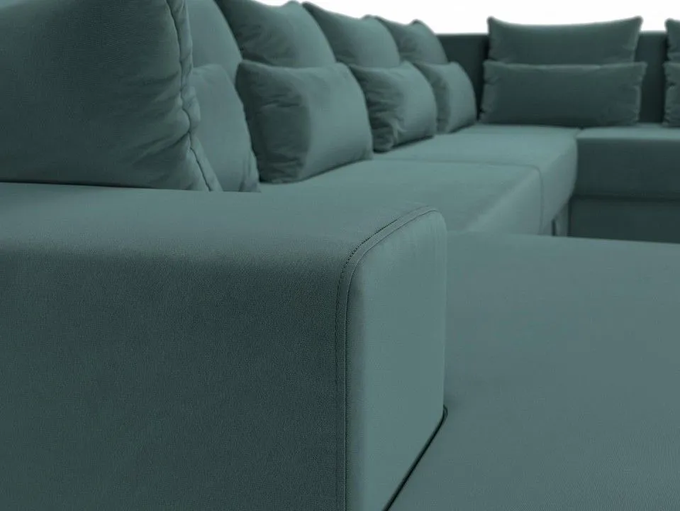 глубина сидения - 850 мм, подлокотники - пластиковые, упругость - средняя, высокое качество и долговечность, полное отсутствие ножек, изделие стоит на корпусе, под сиденьями расположены бельевые ниши, по бокам размещены высокие подлокотники, спинка дополнена многочисленными съемными подушками