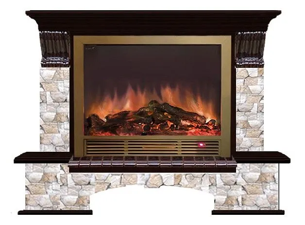 эффект пламени: дрова; регулировка яркости; диммер; мощность обогрева: 750-1500 Вт; размер электротопки 840x745x225 мм