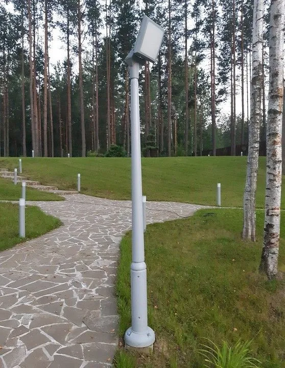 Парковый фонарь FUMAGALLI большого размера серии GIORGIO, модель EKTOR 2500/GIORGIO. Парковый фонарь - прожектор среднего размера в современном стиле на столбе EKTOR. В качестве источников света используются 2 лампы с стандартным цоколем Е-27, возможна регулировка наклона светильника. Предназначен для освещения парковых дорожек, cкверов, садовых и ландшафтных композиций, и других общественных пространств. Используется в качестве основного уличного освещения на городских улицах и площадях. Благодаря регулируемому углу наклона может применяться для подсветки зданий. Парковые светильники изготовлены в Италии, по уникальным технологиям 'FUMATECH' из современного композитного полимера RESIN. Этот материал в 5 раз прочнее силумина, не ржавеет, не окисляется, не выгорает на солнце, его не нужно красить. Все светильники пыле-влаго защищены по стандарту IP65 (Пыленепроницаемые, защита от водяных струй с любого направления). Рассеиватель выполнен из антивандального, не мутнеющего и не горючего PMMA (ПолиМетилМетаАкрилат). Срок службы светильника - не менее 20 лет. Температура использования от -60 до +90. В серии GIORGIO есть ландшафтные фонари в настенном и потолочном исполнении (GUSEPPE, GIOVA/GUSEPPE) а так же двойной прожектор на столб ROSA. Парковые опоры имеют в основе мощную стальную трубу с двойной оцинковкой и монтажный люк. Закладные элементы- в комплекте.