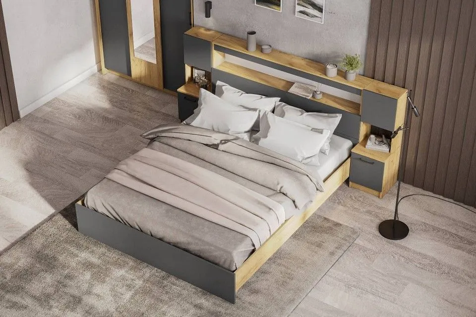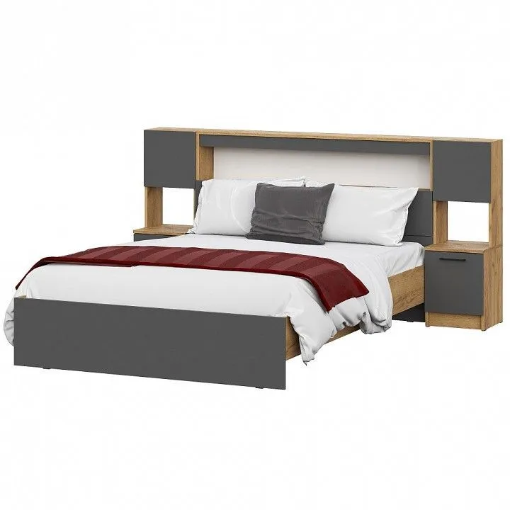 кровать с полками в изголовье и основанием - 2000х1600, комод, шкаф-купе, 2 тумбы прикроватные