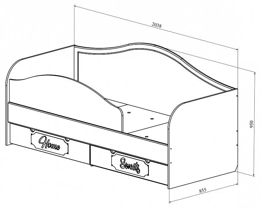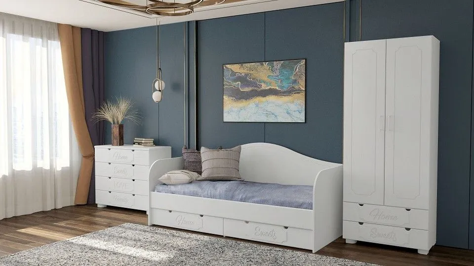 комод - 1000x450x850 мм кровать - 2038x855x950 мм шкаф платяной - 800x516x1974 мм