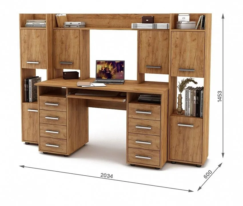 стол компьютерный - 1334x600x1453 мм 2 шкафа комбинированных - 350x300x1453 мм