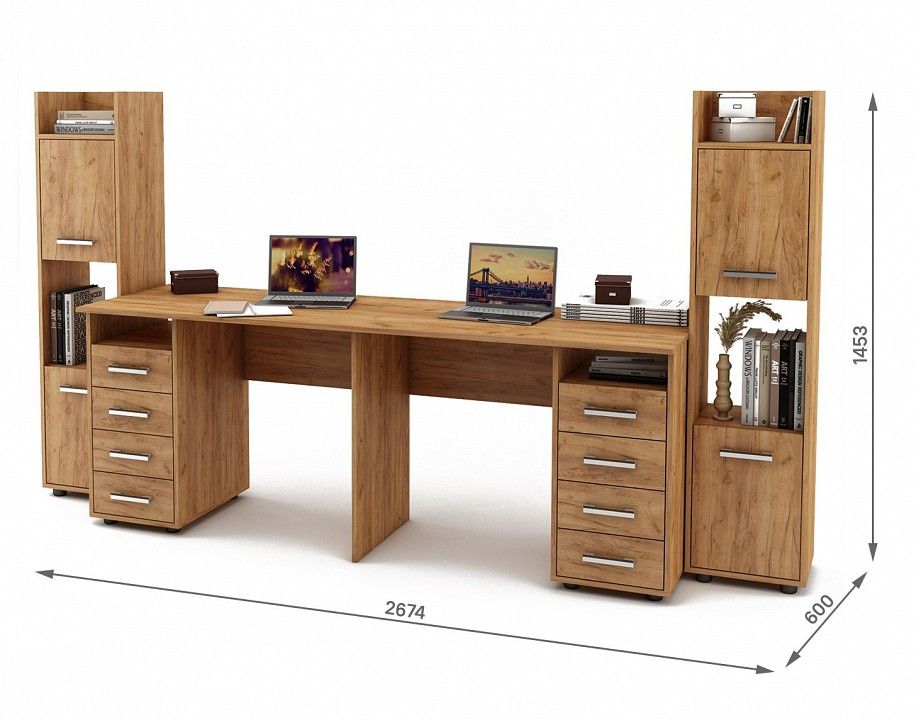 стол письменный - 1974x600x746 мм 2 шкафа комбинированных - 350x300x1453 мм
