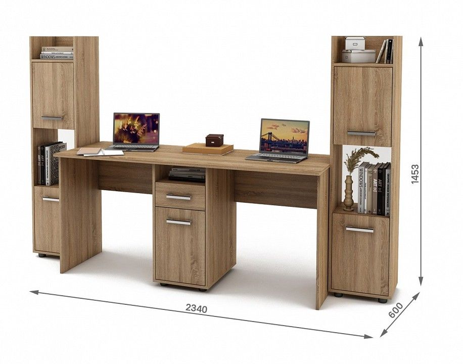 стол письменный - 1640x600x746 мм 2 шкафа комбинированных - 350x300x1453 мм
