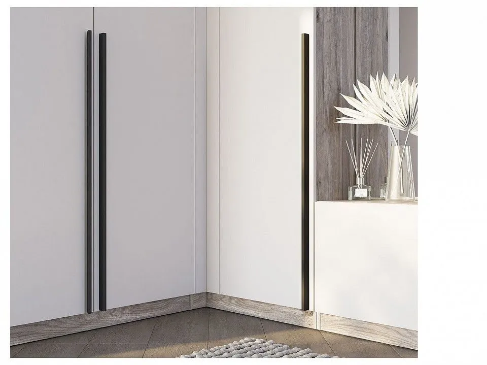 дверцы - распашные, толщина кромки – 0,4 мм, ручки - накладные, пластиковые, крючки – пластиковые, опоры – подпятник, пластик, петли створок – накладные с доводчиком, подъемник для створок - газовый кронштейн, установлены толкатели с магнитом, тип обработки зеркала – еврокромка, крепление к стене – уголок овербаланс