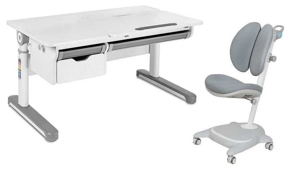 размеры парты: 1100x650x540-760 мм материал: ДСП, полимер, сталь размер наклоняемой части столешницы: 775х425 мм угол изменения наклона столешницы: 0-60° глубина парты: 650 мм диапазон изменения высоты парты: 540-760 мм механизм изменения высоты парты: ручной подходит для детей ростом 100-180 см размеры сиденья: 450х410 мм размеры спинки: 450х410 мм регулировка высоты сиденья: 350-550 мм регулировка глубины спинки: 285-385 мм регулировка высоты кресла: 755-950 мм максимально допустимая нагрузка: 80 кг материал: металл, пена-губка, ткань, PP дополнительные функции: стопперы колес максимально допустимая нагрузка: 80 кг обивочный материал спинки кресла: ткань обивочный материал сиденья кресла: ткань