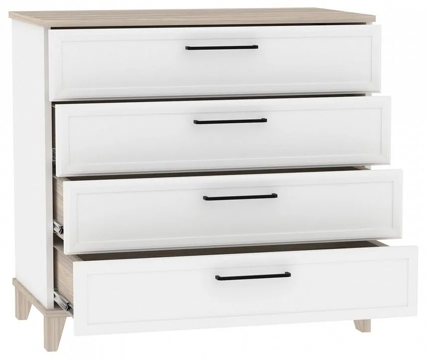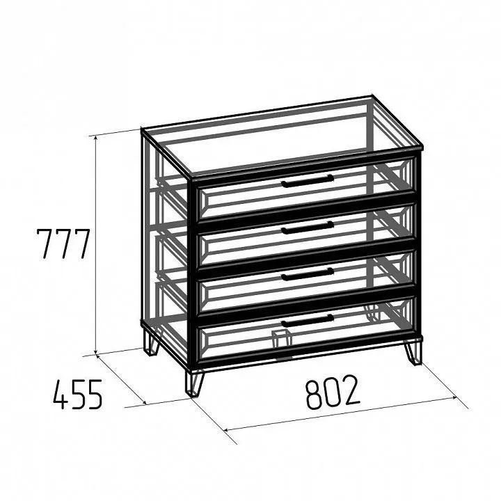 Корпус - ЛДСП Е1 16 мм, профиль фасада, опоры - МДФ, вставка в фасад - ЛДСП Е1 10 мм, кромка ПВХ - 0.4 и 2 мм, направляющие плавного выдвижения, металлические ручки-скобы черного цвета. Максимальная нагрузка:, 10 кг на дно ящиков, 25 кг на столешницу.