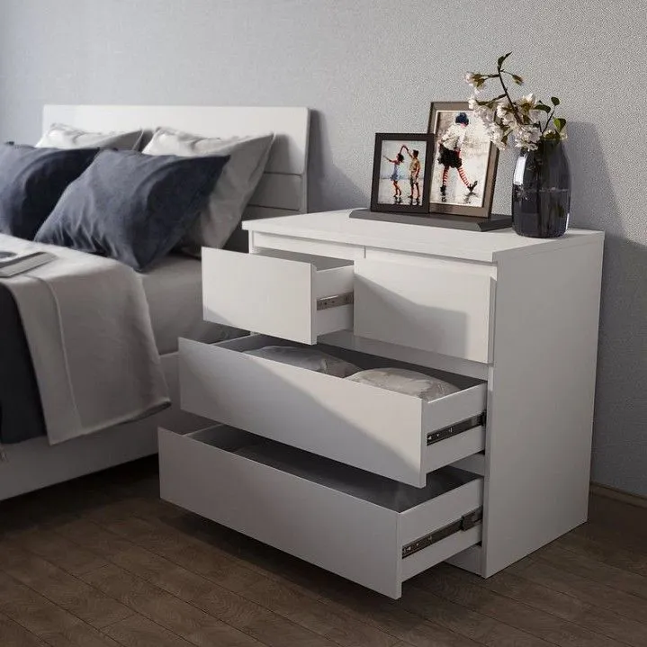 Комод в разобранном виде, инструкция, фурнитура, крепления к стене