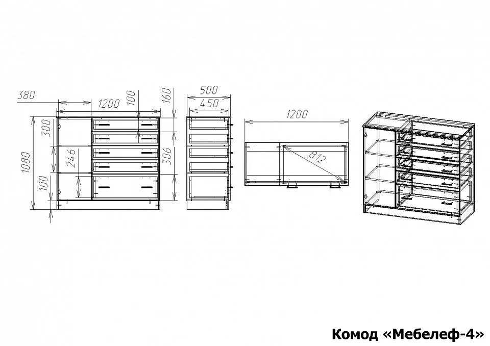 1 дверца, 2 полки, 5 ящиков