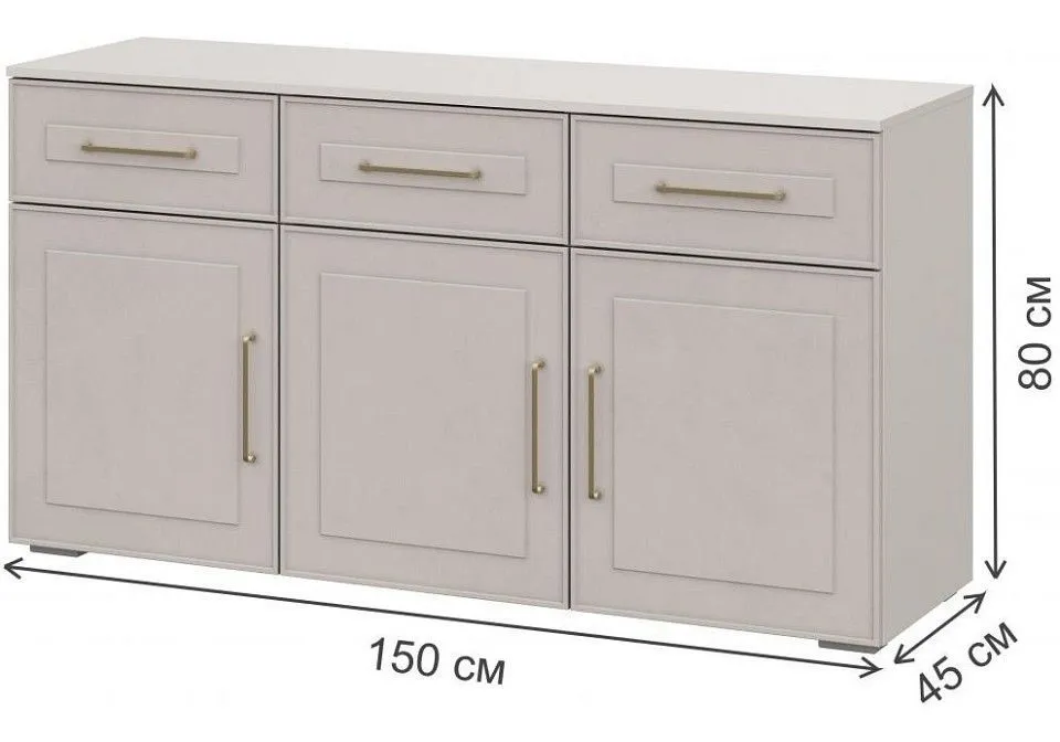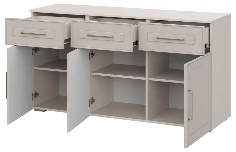3 дверцы, 3 полки, 3 ящика