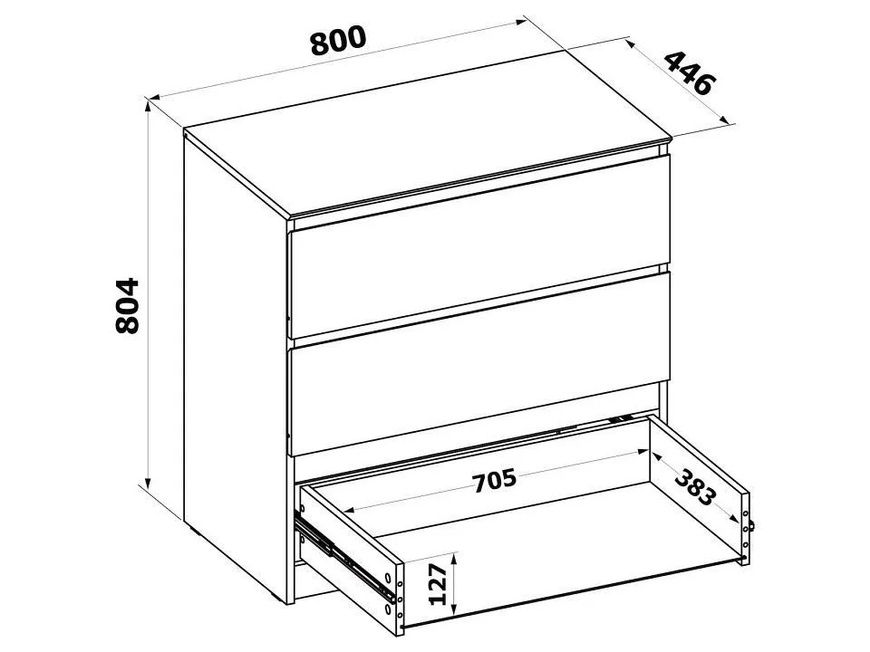 задняя стенка и дно ящиков произведены из ДВП модель оснащена шариковыми направляющими