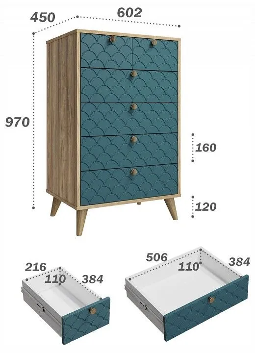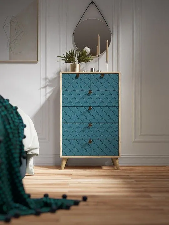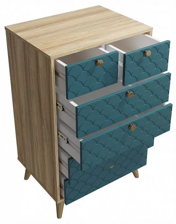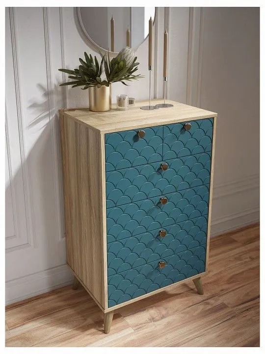 Комод Компасс-мебель Велламо ВО-02, ВО-02-Блэквуд-ячменный-морская-волна