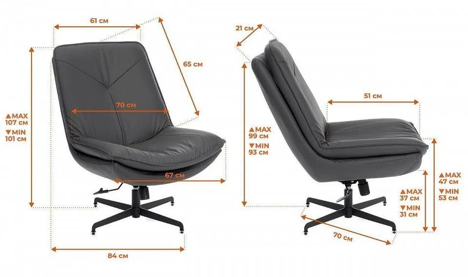 ширина сиденья - 670 мм, глубина сиденья - 510 мм