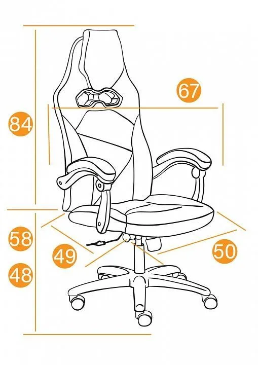 высота от пола до сиденья - 480-580 мм, высота спинки - 840 мм, ширина сиденья - 500 мм
