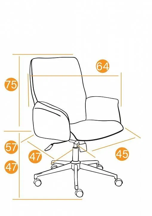 высота от пола до сиденья - 470-570 мм, высота спинки - 750 мм, ширина сиденья - 450 мм