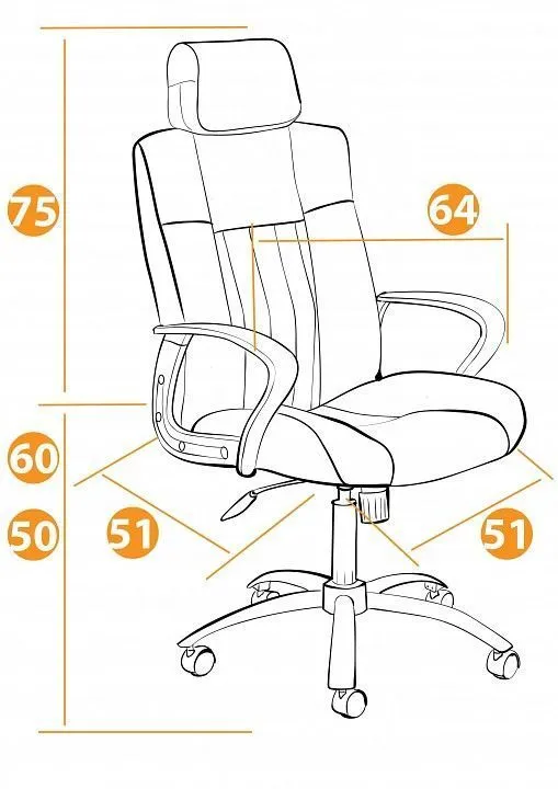 высота от пола до сиденья 500-600 мм высота спинки - 770 мм глубина сиденья - 510 мм ширина сиденья - 510 мм регулировка высоты