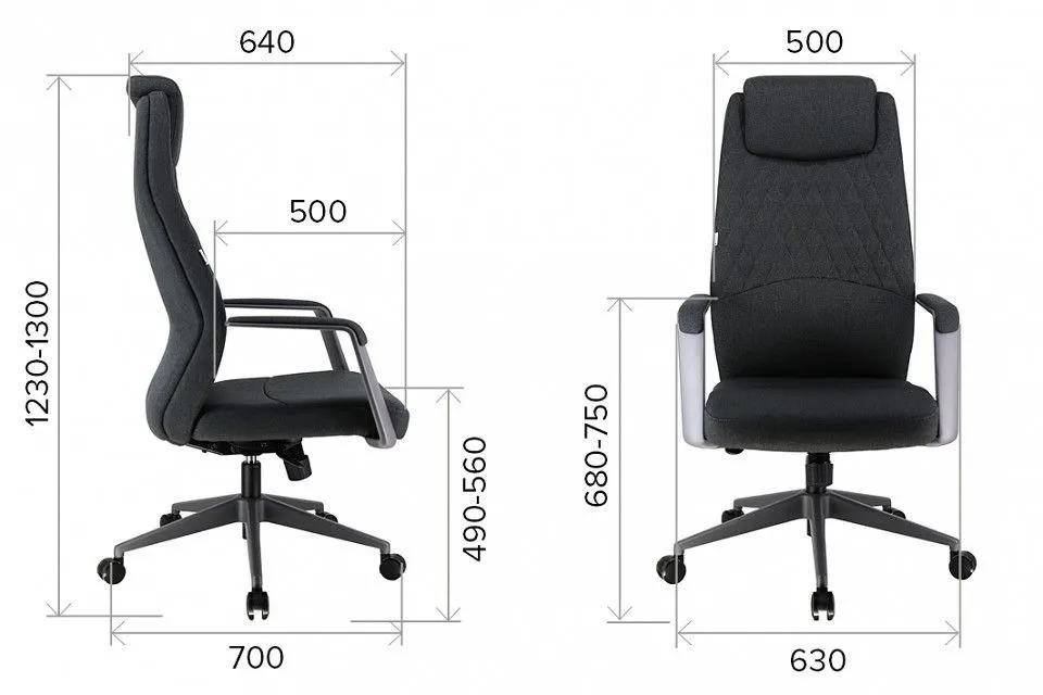 высота сиденья - 490-560 мм, ширина сиденья - 500 мм, глубина сиденья - 500 мм
