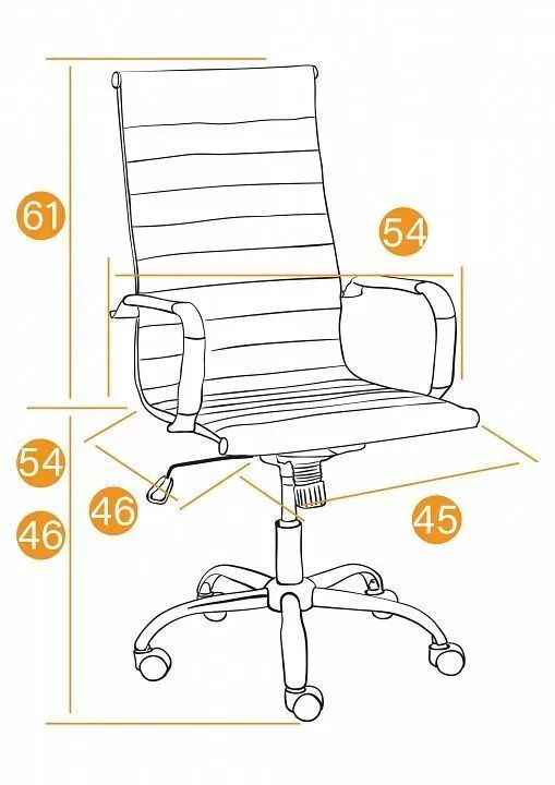 высота от пола до сиденья - 460-540 мм, высота спинки - 610 мм, ширина сиденья - 450 мм