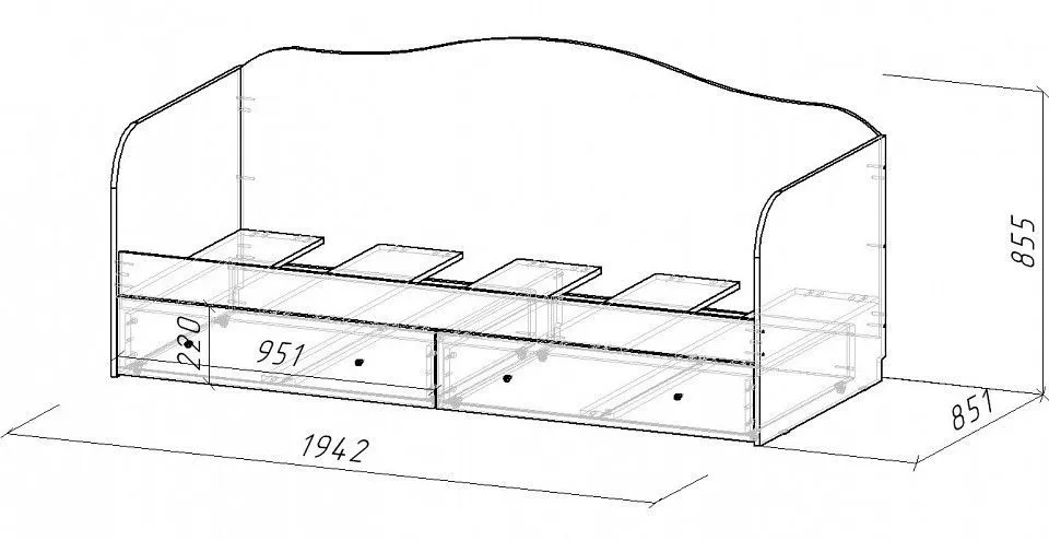 основание - настил ЛДСП Е1, 2 ящика для белья