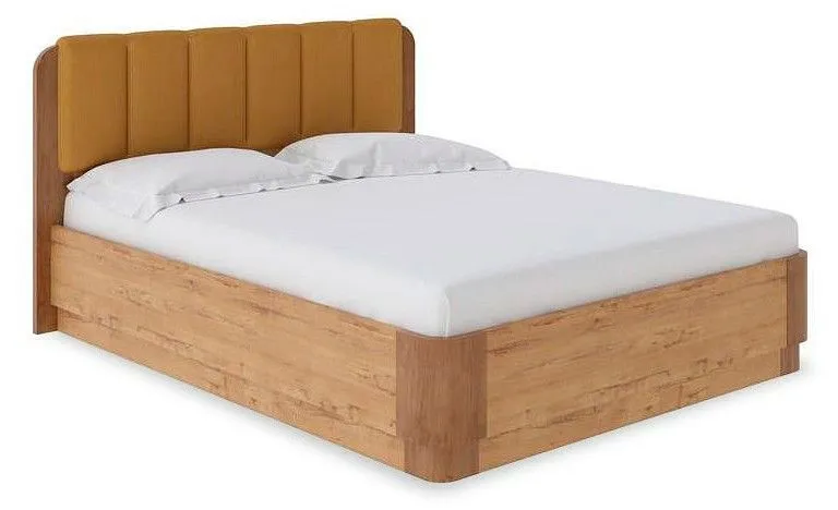90-200 Кровать Wood Home Lite 2 с подъемным механизмом ЛДСП Бунратти/Антик (сосна)/Diva Шафран (308)