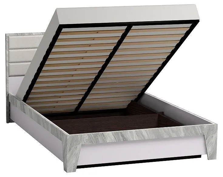 размер спального места, см - 140х200, безупречный стиль, сочетание двух декоров, мягкое изголовье, обтянутое экокожей, ортопедическое основание с подъемным механизмом в комплекте, матрас приобретается отдельно на выбор