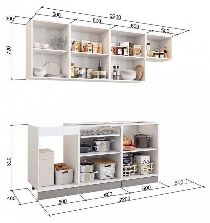 высота верхних тумб - 720 мм глубина верхних тумб - 318 мм высота нижних тумб - 820 мм глубина нижних тумб - 460 мм направляющие в ящиках - метабоксы