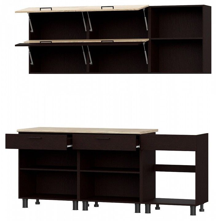 высота верхних тумб - 720 мм глубина верхних тумб - 300 мм высота нижних тумб - 820 мм глубина нижних тумб - 500 мм толщина столешницы - 26 мм глубина столешницы - 500 мм направляющие в ящиках - роликовые