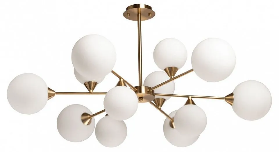 Металлическое основание подвесной люстры гальванизировано в цвет латуни. Стеклянные плафоны выдуваются в форму вручную и матируются.