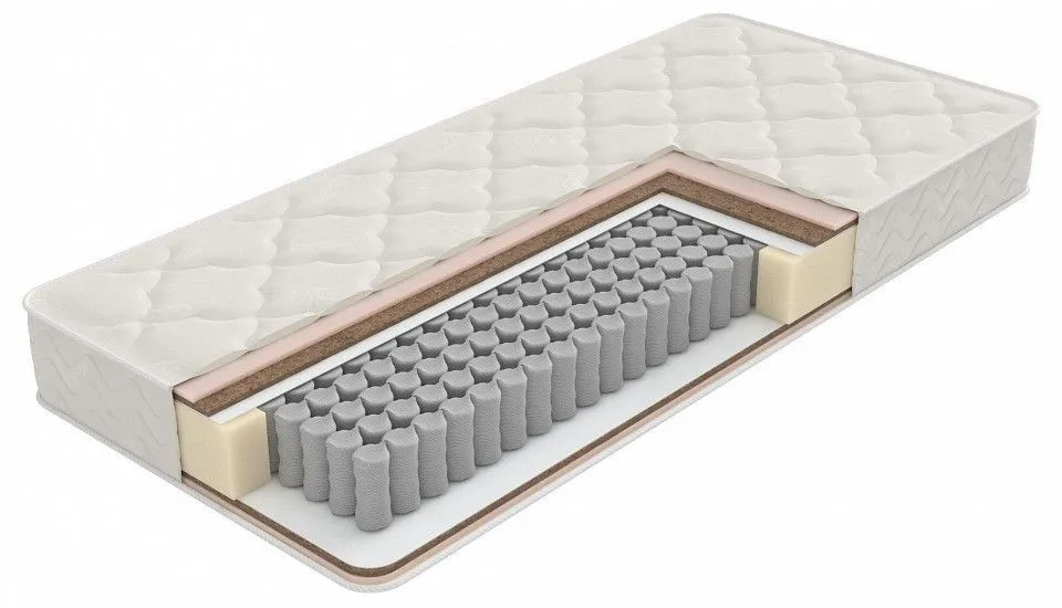 состав слоев:, ormafoam (ППУ) - 1 см, би - кокос - 1 см, спанбонд, EVS420 comfortpoket - 14 см, спанбонд, би - кокос - 1 см, ormafoam (ППУ) - 1 см, короб ormafoam (ППУ), чехол: синтетический жаккард, стежка: синтепон, max вес