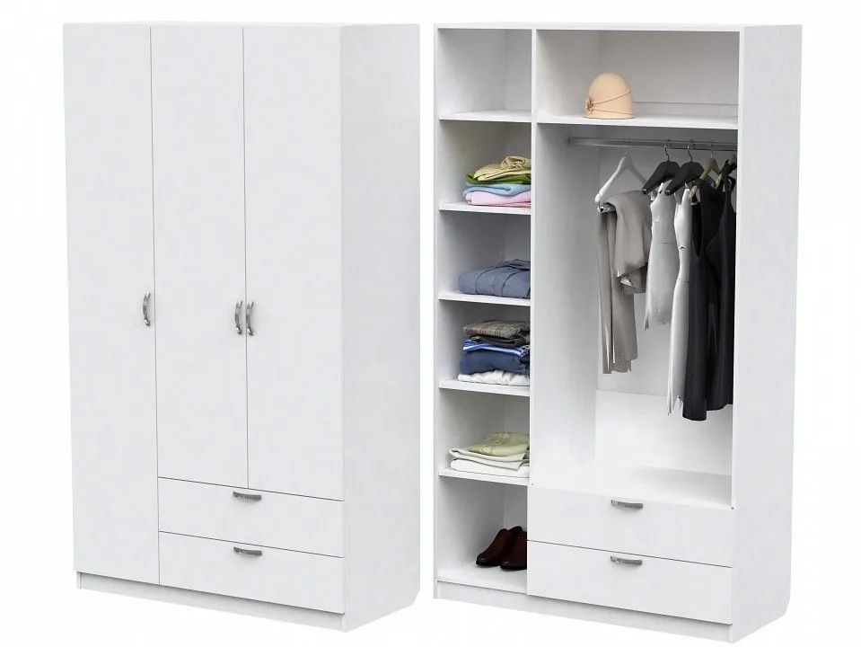 1 штанга для вешалок, 2 ящика, 3 дверцы, 6 полок