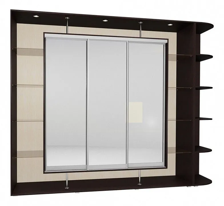 зеркало в алюминиевом профиле, профиль: Aristo, анодировнный алюминий, матовое серебро, стеклянные полки матовые, толщиной 4 мм