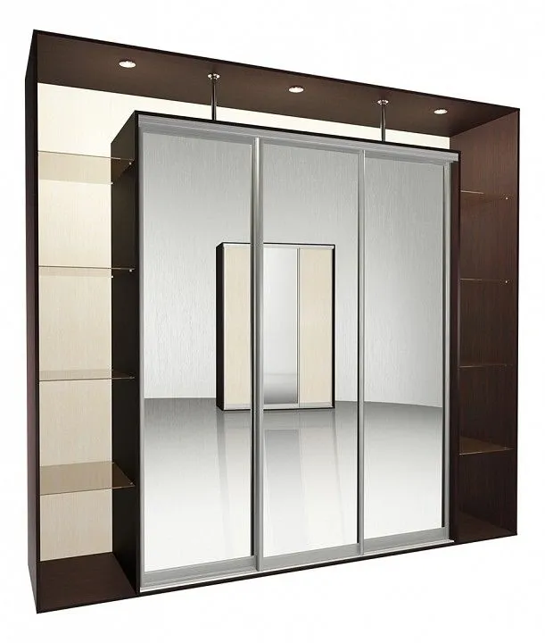 зеркало в алюминиевом профиле, профиль: Aristo, анодировнный алюминий, матовое серебро, стеклянные полки матовые, толщиной 4 мм