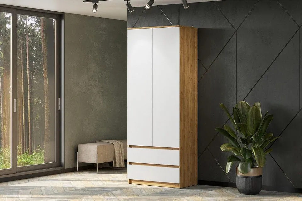 1 полка, 1 штанга для вешалок, 2 дверцы, 2 ящика