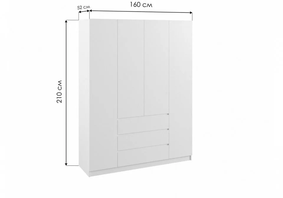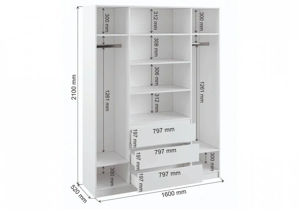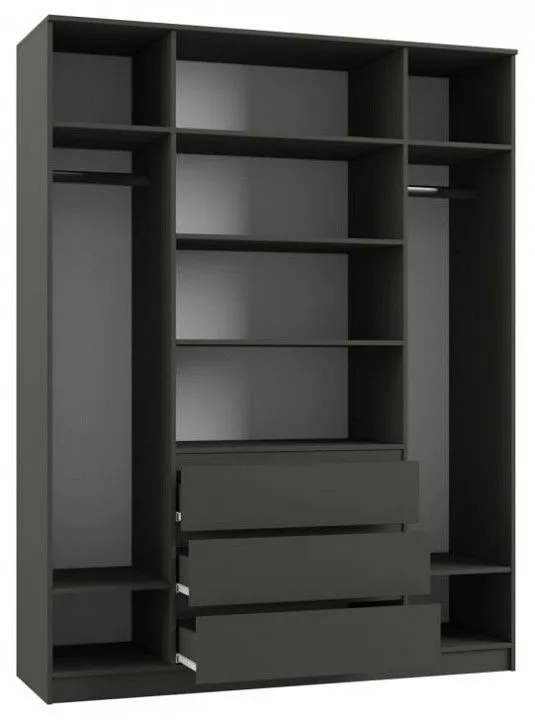 2 штанги для вешалок, 3 ящика, 4 дверцы, 7 полок