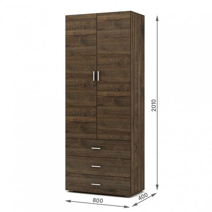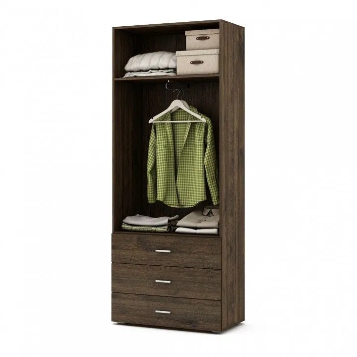 1 полка, 1 штанга для вешалок, 2 дверцы, 3 ящика