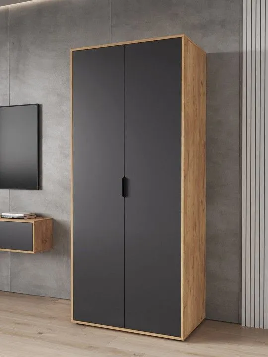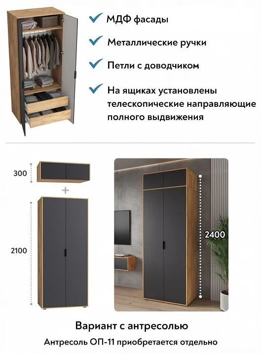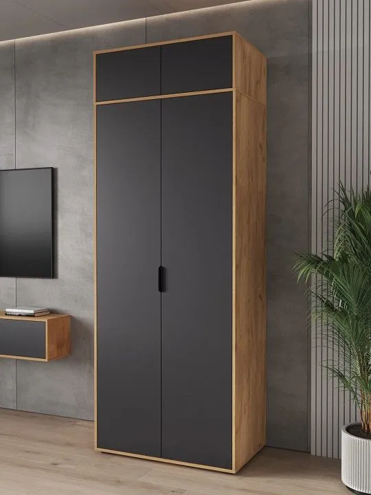 Шкаф платяной Компасс-мебель Оптима ОП-14, ОП-14-Дуб-крафт-золотой-Графит
