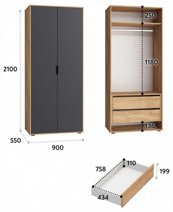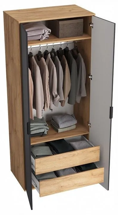 1 штанга для вешалок, 2 дверцы, 2 полки