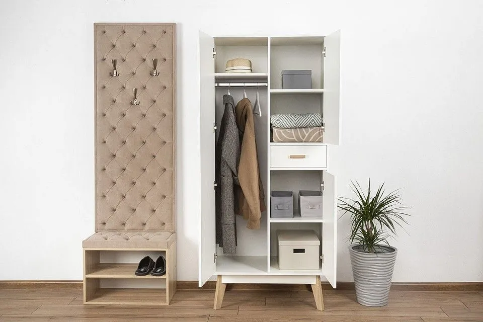 1 штанга для вешалок, 1 ящик, 3 дверцы, 3 полки