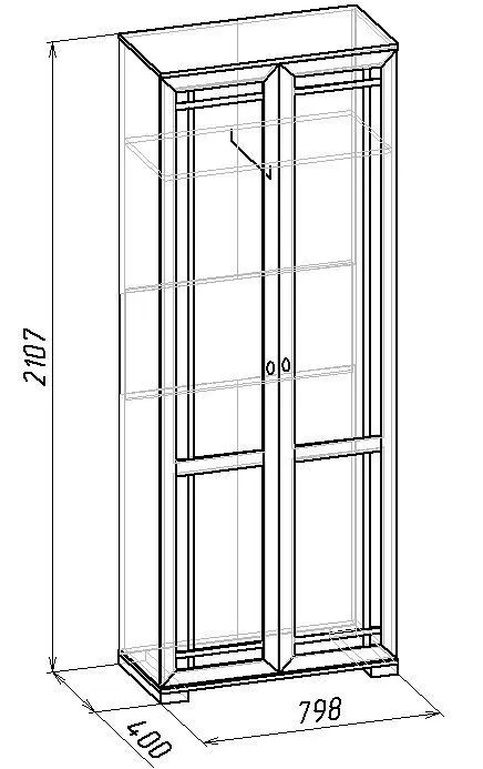 1 штанга для вешалок, 1 полка, 2 дверцы
