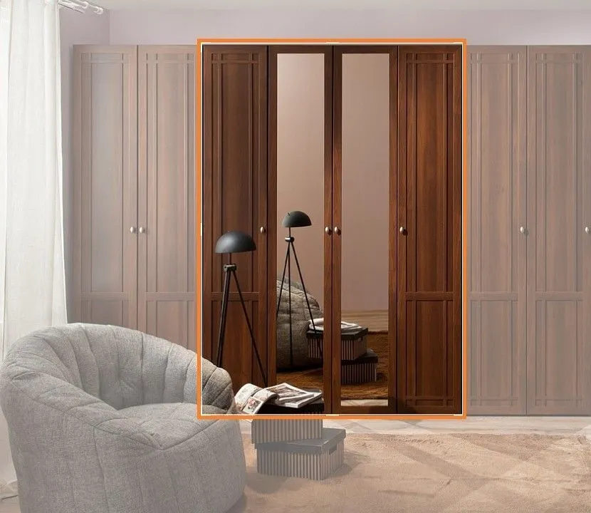 2 штанги для вешалок, 4 дверцы, 9 полок