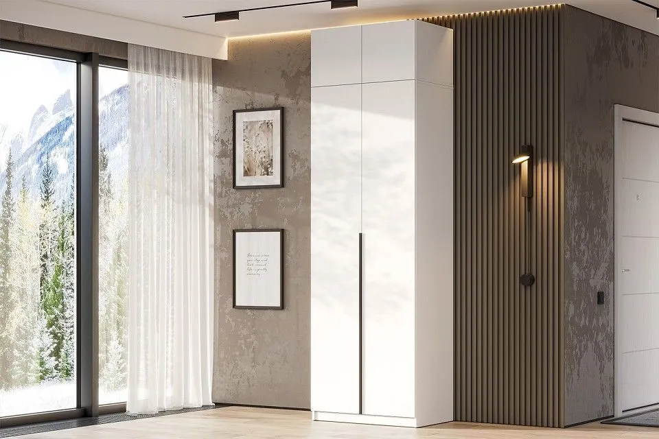 1 полка, 1 штанга для вешалок, 4 дверцы