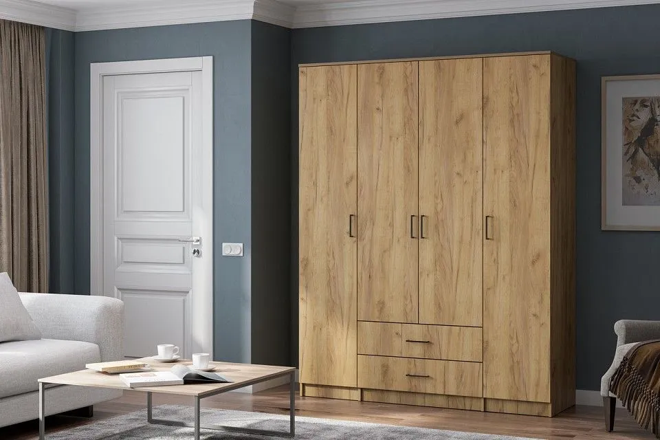 1 штанга для вешалок, 2 ящика, 4 дверцы, 9 полок