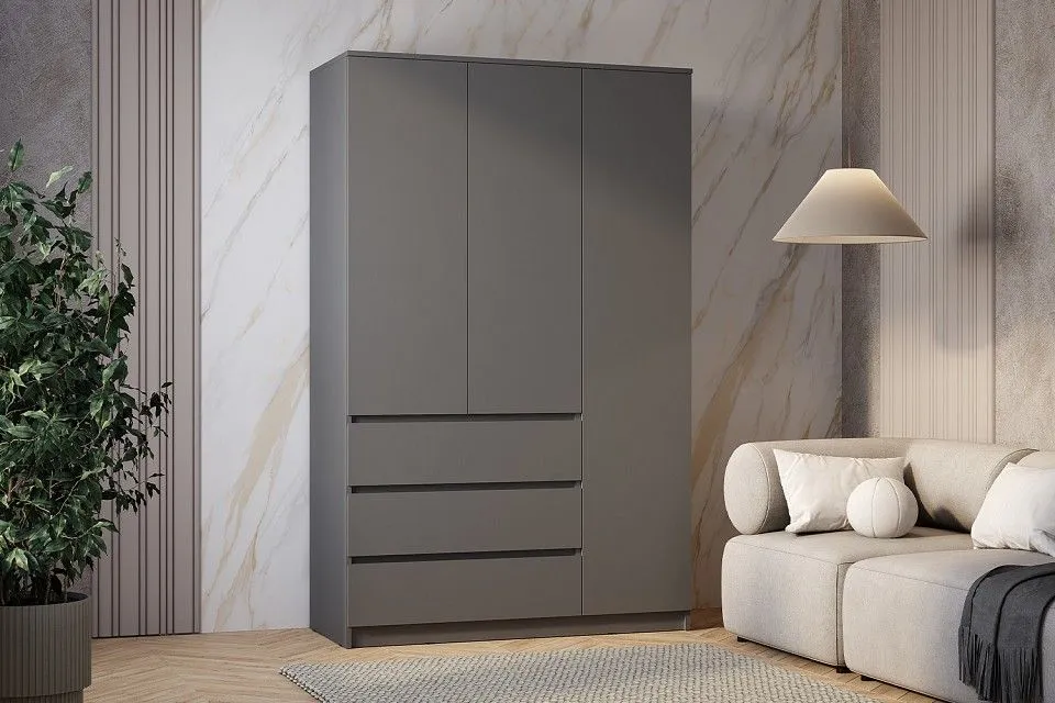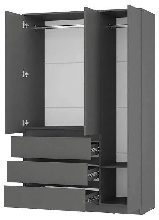 1 полка, 2 штанги для вешалок, 3 дверцы, 3 ящика
