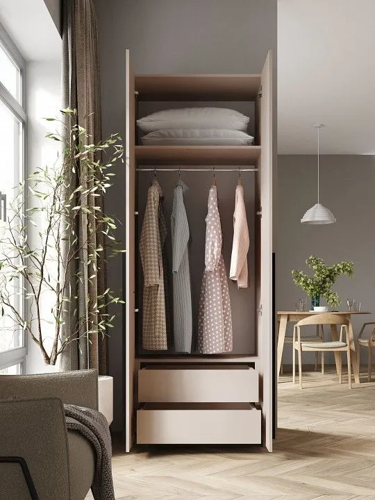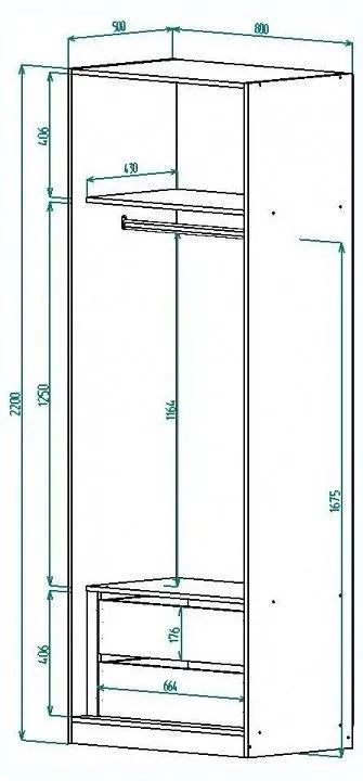 1 штанга для вешалок, 2 дверцы, 2 полки, 2 ящика