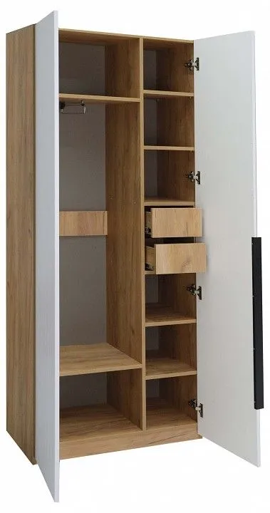 1 штанга для вешалок, 2 дверцы, 2 ящика, 7 полок