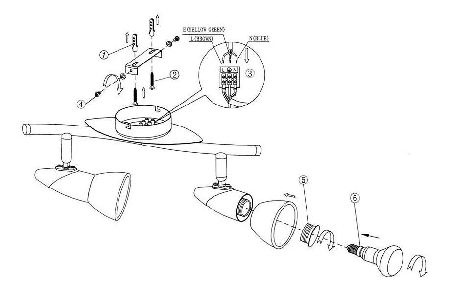 поворотный светильник, рефлекторная лампа R50 (диаметр колбы 50 мм) или аналоги