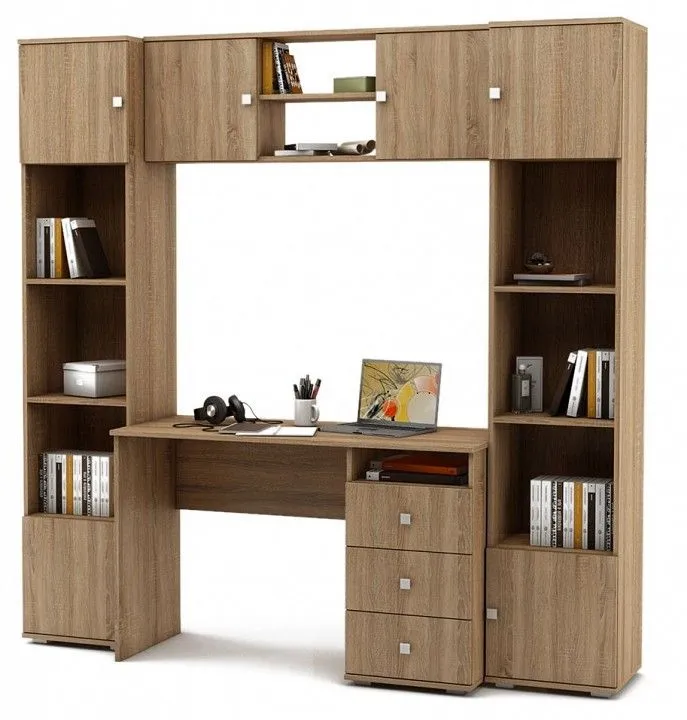 полка комбинированная - 1200x250x410 мм, стол письменный - 1200x500x750 мм, ,2 стеллажа комбинированных - 400x370x2000 мм